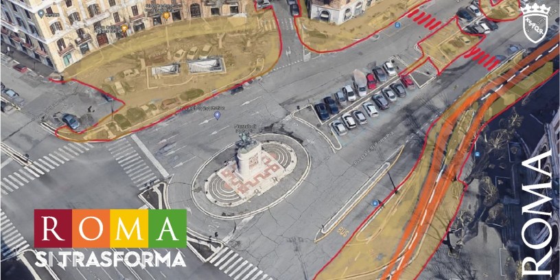 • realizzazione di un’ampia area pedonale pavimentata sul lato nord del piazzale di Porta Pia