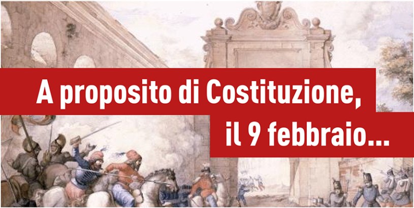 Quando a Roma il 15 novembre 1848 il capo del governo dello Stato Pontificio Pellegrino Rossi viene ucciso Pio IX, papa Carlo Maria Mastai Ferretti, fugge a Gaeta. Goffredo Mameli accorre a Roma da Genova e da lì chiama il suo padre spirituale, Giuseppe Mazzini, con un famoso telegramma: “Roma. Repubblica. Venite.” Qualche mese dopo, il 21-22 gennaio 1849, a suffragio universale maschile, viene eletta un’Assemblea Costituente che proclama la Repubblica e scrive il testo di una Costituzione.