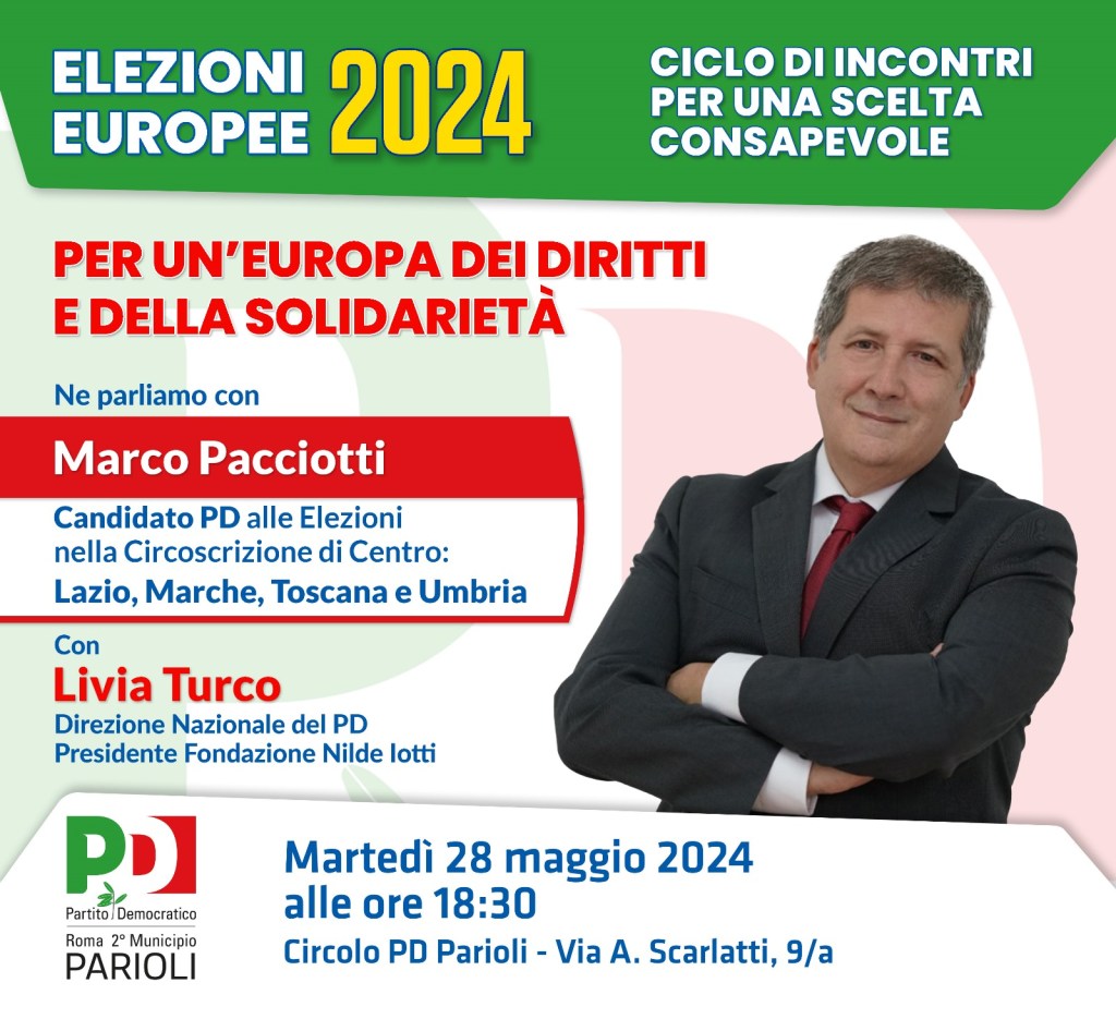 – Marco Pacciotti, candidato PD alle Elezioni Europee nella Circoscrizione Italia Centrale,