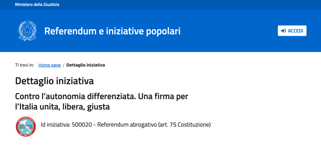 “Volete voi che sia abrogata la legge 26 giugno 2024, n. 86, ‘Disposizioni per l’attuazione dell’autonomia differenziata delle Regioni a statuto ordinario ai sensi dell’articolo 116, terzo comma, della Costituzione?”